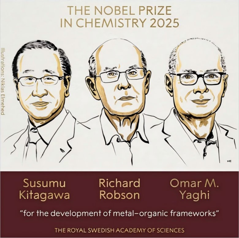 2025年10月8日,瑞典皇家科学院公布了诺贝尔化学奖的最终归属,将该奖项授予了在金属有机框架(Metal Organic Framework,MOF)领域有开创性工作的研究者,强调MOF在药物递送体系、碳捕获、海水淡化、污染物去除等重大应用中的潜力。MOF犹如微观的“分子口袋”,能够容纳多种分子。